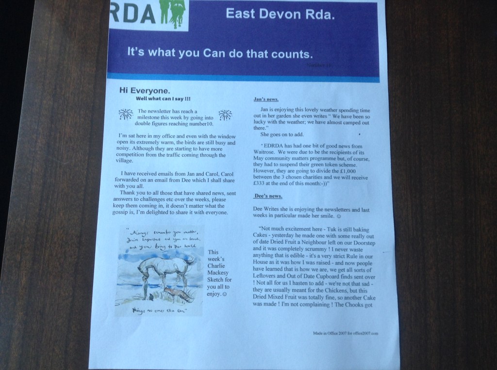 However the success of the newsletter isn’t just down to me, a great deal has to be down to all my fellow volunteers, the riders and their families taking the newsletter on board and embracing it by participating in all the challenges, quizzes and sending me contributions of their own for inclusion in the newsletter over the weeks.